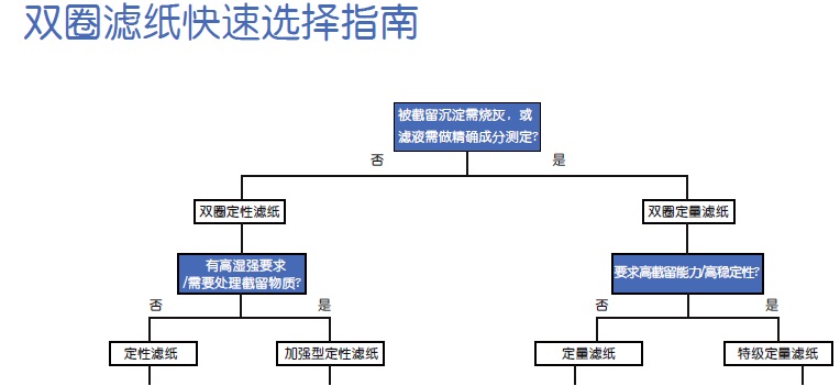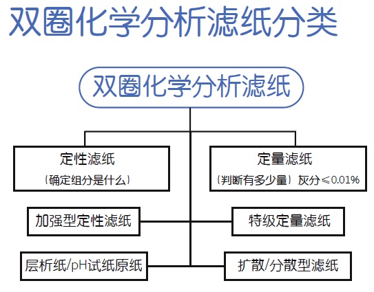 双圈定量滤纸以表面光洁、本底纯净、过滤效果佳而著称。主要应用于精确定量分析实验和要求洁净环境与低干扰的设备、电子器件和实验条件。双圈品牌专门设计有三种不同流速的滤纸以满足不同应用:快速、中速和慢速。不同型号的滤纸其物理化学指标也各有不同,兼顾了过滤速度和颗粒截流效果,应用于食品分析、土壤分析、建筑业、矿产和钢铁业的无机分析。在制造过程中,通过严格的物理控制和清洗工艺,滤纸中绝大多数杂质被去除,煅烧后残留灰分极少,保障了精确的定量分析。