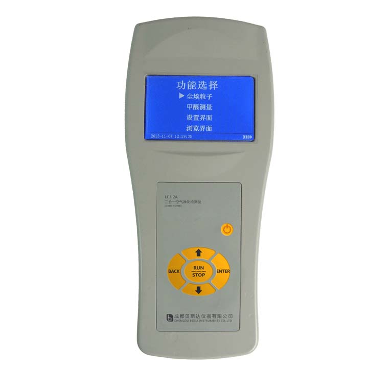 空气净化检测仪是一种新型的直读式定量分析仪。它由先进的激光传感器、电化学传感器、高精度采样泵和微处理器构成。测量项目有尘埃粒子、甲醛、温湿度等。它可广泛用于空气净化器净化效率的检测以及个人居家、企事业单位、环保卫生等部门。