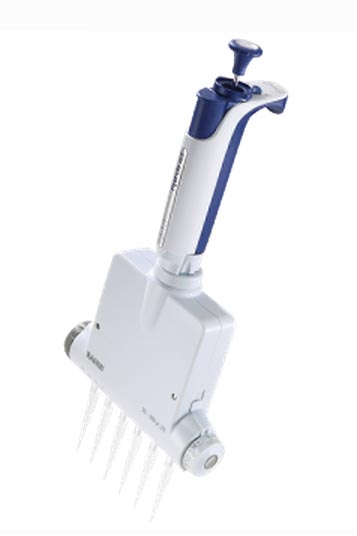 连续可调间距允许8通道型的孔间距在9-14mm之间,6通道型的, , 孔间距在9-19mm,适合96孔板吸液,并可分配到24孔板或离心管。平稳的单手调整确保吸入后或分配前实时地进行更改。间距标记提供快速的操作辅助,或者设置可调装置以自动获得可重复性间距。