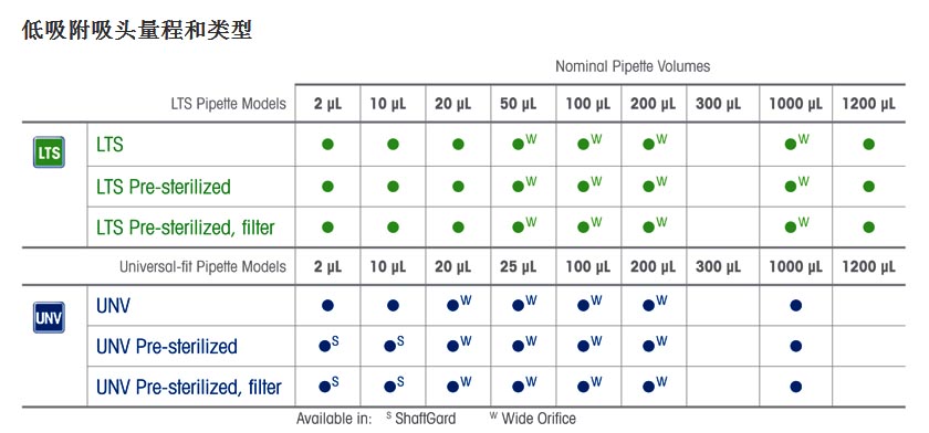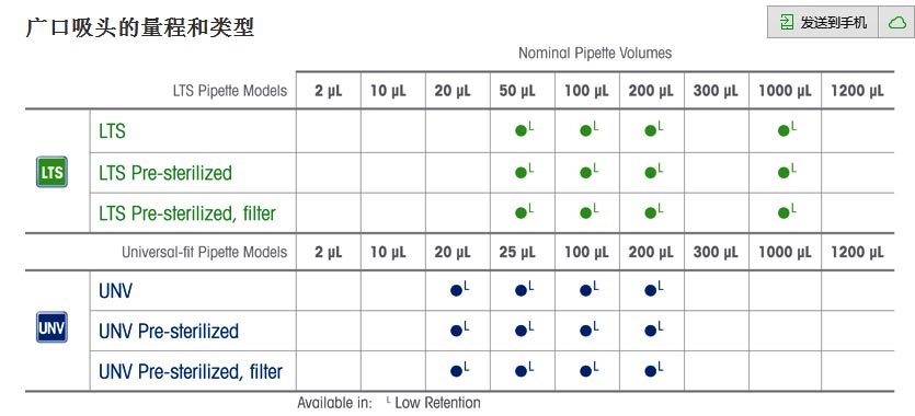 大大减少残留量 Rainin LR吸头表面的疏水性含氟聚合物均匀场可防止样品与聚丙烯吸头表面相互作用。在此简短的视频中,通过基于丙二醇的食品着色剂可以看出Rainin LR低吸附吸头如何消除附着。Rainin LR吸头通过在分配后大大减少样品残留量,消除移液不准确的主要来源。 FinePoint FinePoint吸头逐渐变为窄口直径。其纤细的设计与柔软的薄壁相结合,构成非常优质的样品分液用吸头。窄口孔及其周围的薄壁样品在分配过程中为残留样品提供最小的表面积。FinePoint吸头能够全部排出液体,从而实现最高的移液精确度。 并非所有的低吸附吸头都完全相同 比较常见的制造方法,如将吸头在含氟聚合物中浸泡或蘸拭,生产出的吸头含氟聚合物层不完整、不均匀,会影响移液的准确性。 此外,利用“钻石抛光”模具制作的吸头 — 通常因为吸附力小而受推崇 — 不会防止样品与聚丙烯相互作用并附着到表面上。 Rainin经过认证的型号 确保低吸附吸头在依照其说明手册与Rainin移液器配合使用时提供精准的测量结果。 ● Rainin经过认证的低吸附吸头满足或超出以下方面的最低标准: ● 无差别 ● 无污染 ● 表面光滑度和规则性 ● 交付端外形、尺寸和表面处理 ● 在EDP、Pipetman 和 Pipet-Plus移液器上实现密封集成 ● 移液精度(非常规外形导致偏差) 广口 Rainin广口LR低吸附吸头将广口径与粘性/糖浆状液体、培养细胞和高分子聚合物(例如基因组DNA)的超级防尘含氟聚合物表面相结合。这些吸头减小了剪切力,并提供超滑表面,可以保护脆弱的样品。 多种规格、类型和包装选择 对于LTS和通用型移液器来说,Rainin LR低吸附吸头提供多种规格和类型。它们具有多种包装选择,如盒装GreenPak、SpaceSaver和袋装等。