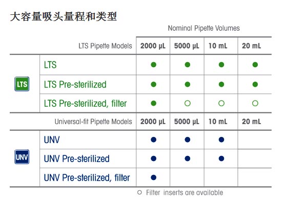 “曲折路径”气雾屏障 防气雾型吸头使用烧结聚乙烯制成的滤芯。这形成一道“曲折路径”气雾屏障。 Rainin滤芯的平均孔径为40微米。该孔径被视为“不太严格”,没有发现增加阻力或影响移液准确性。 Rainin经过认证的型号 确保滤芯吸头在依照其说明手册与Rainin移液器配合使用时提供精准的测量结果。 Rainin经过认证的滤芯吸头满足或超出以下方面的最低标准: ● 无差别 ● 无污染 ● 表面光滑度和规则性 ● 交付端外形、尺寸和表面处理 ● 移液精度(非常规外形导致偏差) FinePoint FinePoint吸头逐渐变为窄口直径。其纤细的设计与柔软的薄壁相结合,构成非常优质的样品分液用吸头。窄口孔及其周围的薄壁样品在分配过程中为残留样品提供最小的表面积。FinePoint吸头能够全部排出液体,从而实现最高的移液精确度。 多种规格、类型和包装选择 对于通用型移液器来说,滤芯吸头提供多种规格和类型。它们具有多种包装选择,如盒装、GreenPak、SpaceSaver和袋装等。 BioClean质量 每个Rainin LR吸头都会经过严格测试,并证明不含以下物质: ● DNA ● DNase ● RNase ● 热原质 ● ATP ● PCR抑制剂