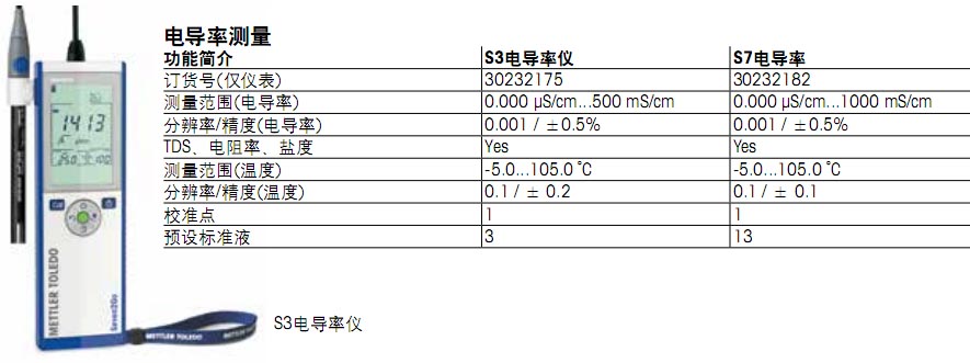 梅特勒-托利多电导率仪 S3 S7 便携式电导率仪