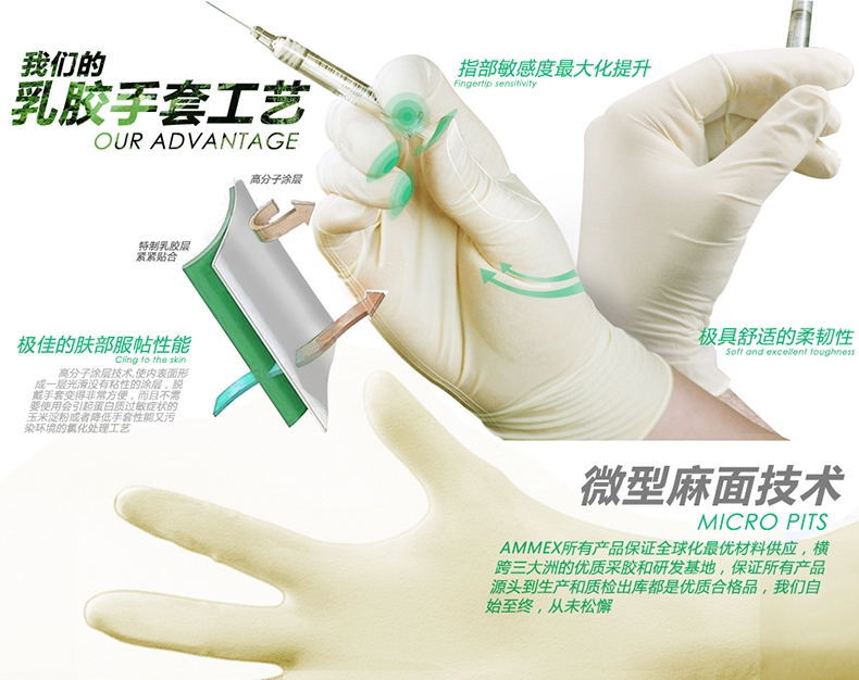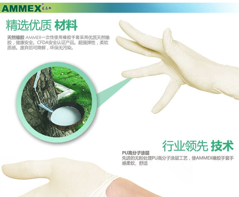 3.爱马斯手套 一次性乳胶手套 实验室手套 医用牙科手套食品酒店
