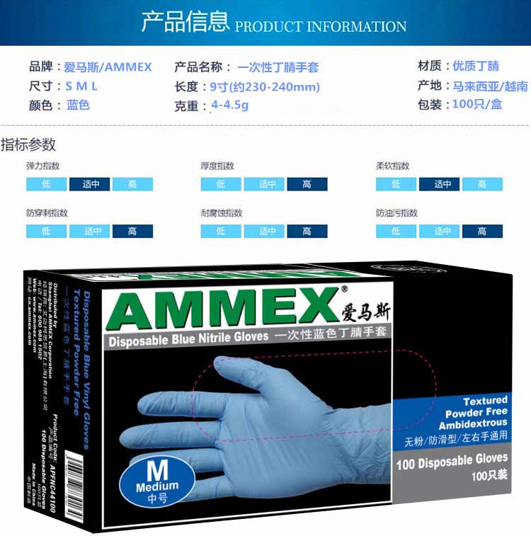 实验室设备 >> 爱马斯手套 >> AMMEX爱马斯一次性手套 医用手套 一次性口罩