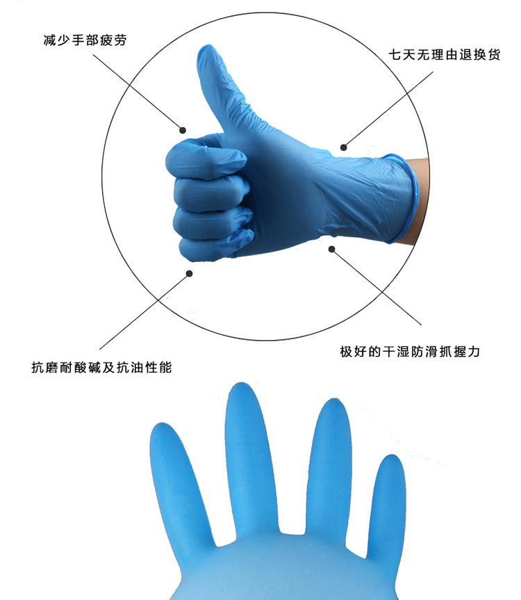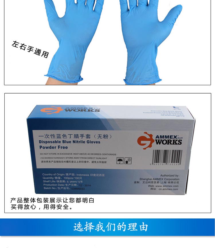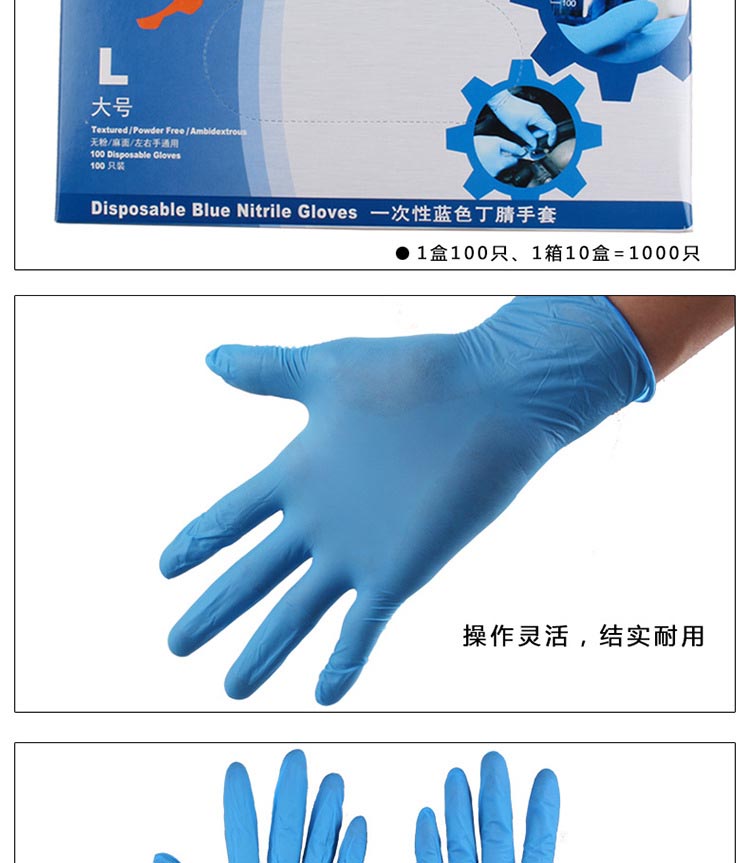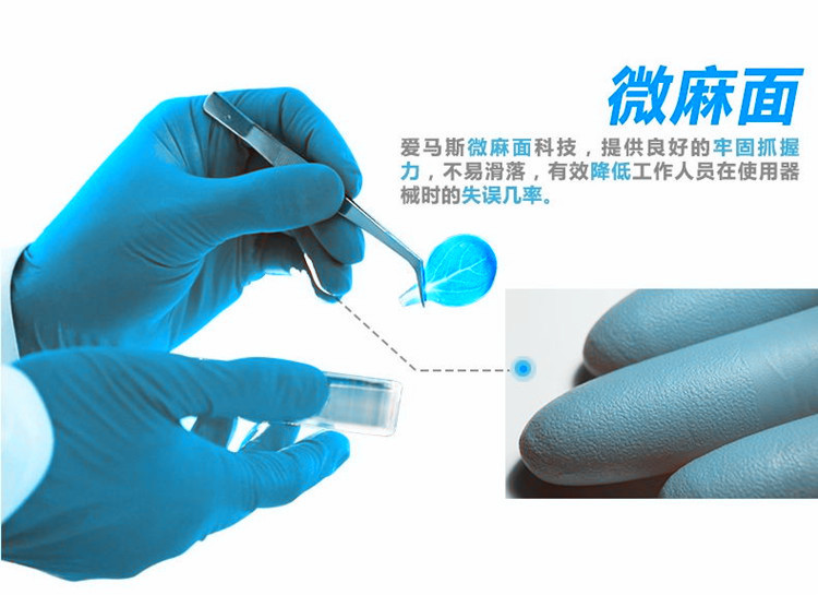 2.爱马斯蓝色丁腈手套 一次性丁晴手套 实验室手套医用牙科食品餐饮