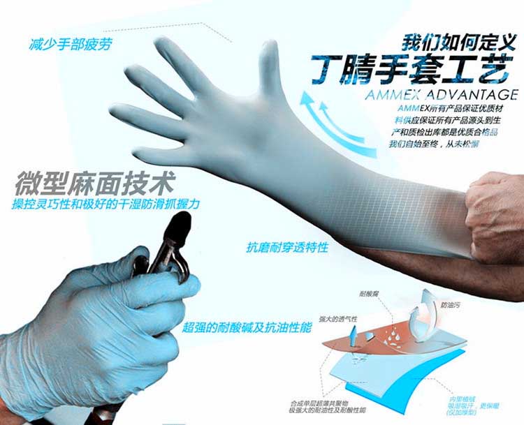1.AMMEX爱马斯丁腈手套 一次性经济型丁腈手套 实验室手套 无粉麻面