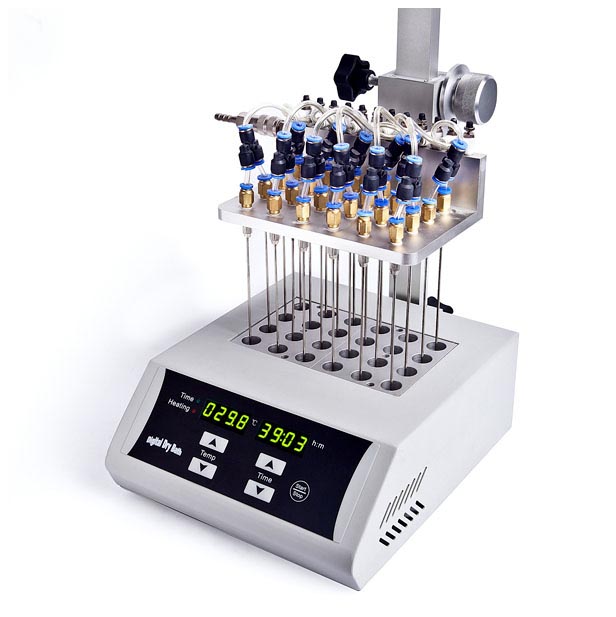 NDK200-2 氮吹仪主要用于大批量样品的浓缩或制备(如药物筛选、激素分析、液相、及质谱分析中的样品制备) 。工作原理:通过将氮气吹入加热样品的表面,使样品中的溶剂快速蒸发、分离,从而达到样品无氧浓缩的目的,保持样品更纯净。使用氮吹仪代替常用的旋转蒸发仪进行浓缩,能同时浓缩几十个样品,省时高效。