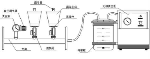 5. 真空抽滤:采用无污染无油型负压真空泵;真空抽滤瓶和真空泵之间配有真空泵保护器,从而避免了抽真空时水不慎抽入真空泵引起泵的损坏。